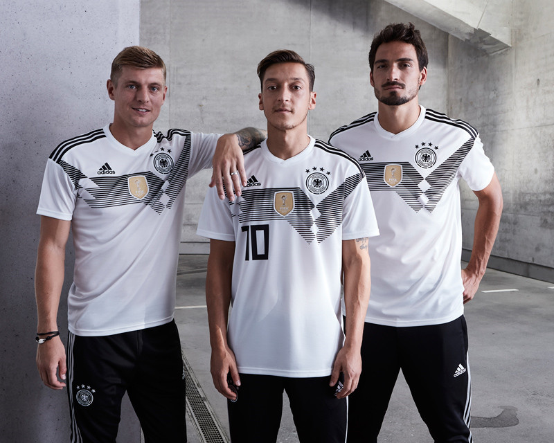 Den nya hem jersey att hylla den mest ikoniska klassiska skjorta i historien om det tyska laget, det var i 1990 VM-finalen, tyskarna 1-0 seger över Argentina, tre gånger mästare i historien världen. Från unika designer shirt främre delen av taggiga ränder inspiration, sin omtolkning av riktningen av de horisontella ränder i den ursprungliga swap, samtidigt som man skapar en grå ton stil genom att ändra tjockleken på olika svart mönster. Jerseyen använder en svag axellinje för att förbättra och re optimera prestanda.